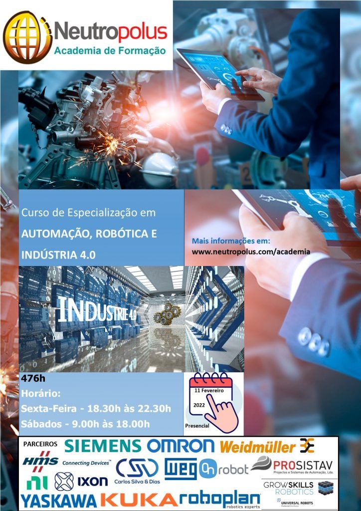 Curso de Especialização Tecnológica Por NeutropolusEm Academia NeutropolusPostou 17 de Novembro, 2021 Curso de Especialização em Automação, Robótica e Indústria 4.0. As inscrições estão abertas até 11 de Maio. Ver o Curso